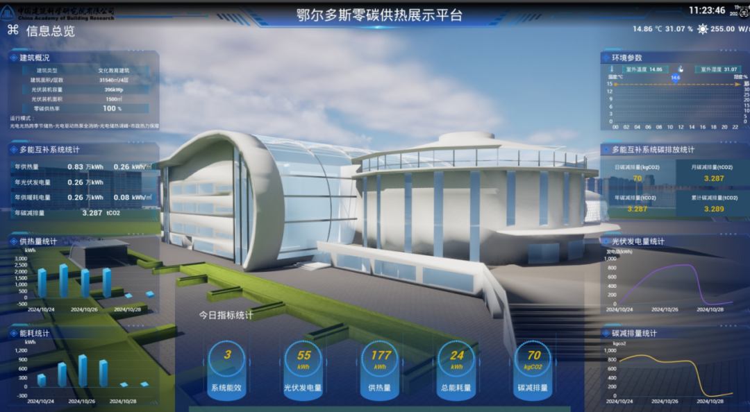 项目以装配式零碳供热机房替代原有供热系统,集成光伏、地源/空气源热泵等技术,年节约标煤220吨,减排CO2超过500吨,冬季供热能效比(COP)达4.28,全年供能COP超4.65,节省供暖制冷费用85万元,具备极高的经济性。项目实现了光伏全额消纳、供热安全稳定、资源灵活调度、多能集成互补、安装便捷高效、能源数智运维,为小型低碳供热领域树立了新标杆。