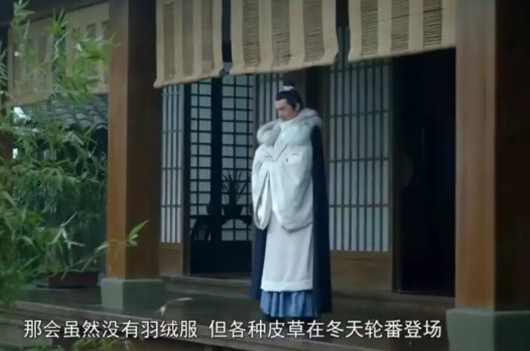 那会虽然没有羽绒服,但各种皮草在冬天轮番登场。在《红楼梦》中,就有斗篷,鹤氅、雪帽、狐皮袄子、羊皮小靴等等。贾宝玉平时有起夜披的貂颊满襟暖袄,重要场合还有贾母赏赐的雀金裘等。