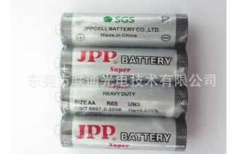 JPP 5号碳性性电池,使用范围:适应于摇控器、保险柜、计算器、MP3、电动玩具、门禁、检测仪器仪表、无线麦克风、电子秤等。产品高质量,具有放电电压平稳,放电电流均匀等特点。可供出口全球,并能提供相应证书资料,另外还有其他型号JPP电池,想了解详细资料和价格请来电咨询。