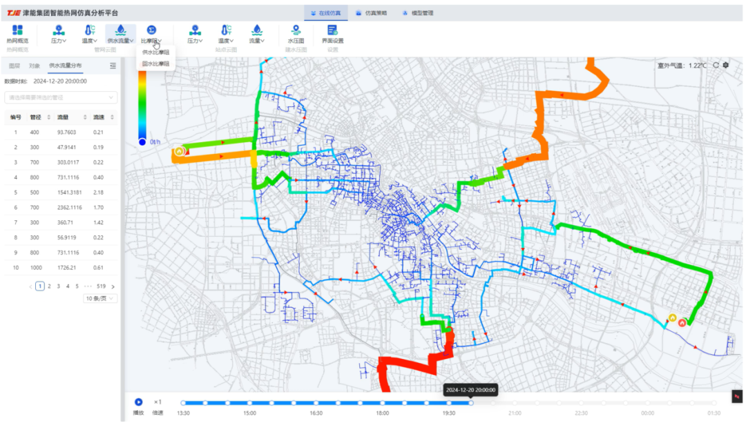 图3 天津市中心城区大热网动态流量分布的在线仿真